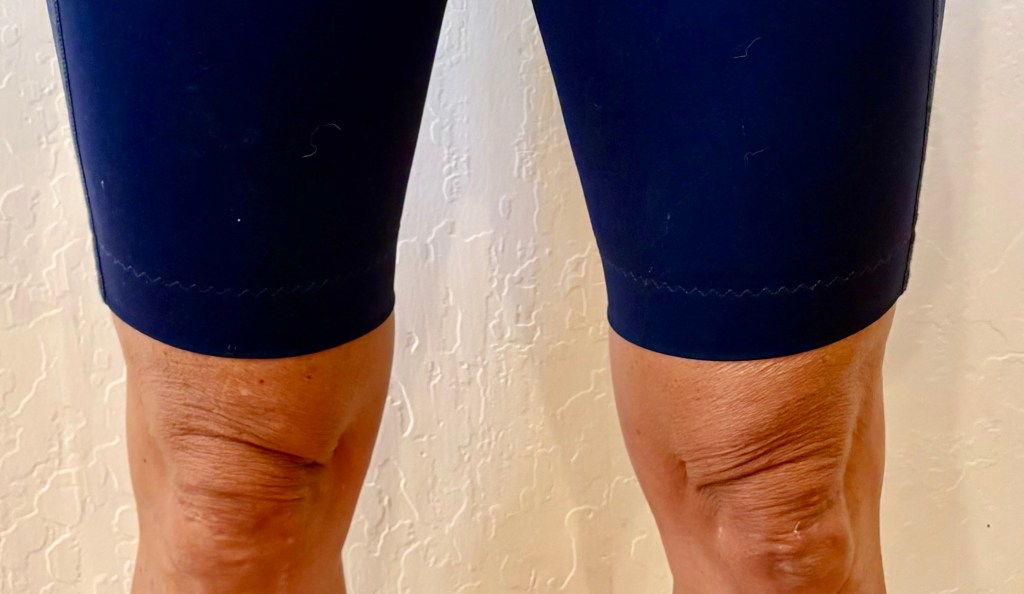 Feel: Do you have a favorite pair of yoga pants that feel like butter when you pull them on? That’s what these feel like. Stretchy cloth butter. These shorts do NOT have the compression feel of Bella Primas, Bella Maxes, or Holster Primas. They just glide on. There is a high, comfortable waist band that comes up just over my belly button. I think they feel dreamy. The leg bands are a little over an inch wide and they do not have an adhesive, they are just doubled over fabric extended from the short. They do not pinch, they stay in place, and they still feel divine even after many washes and wears.