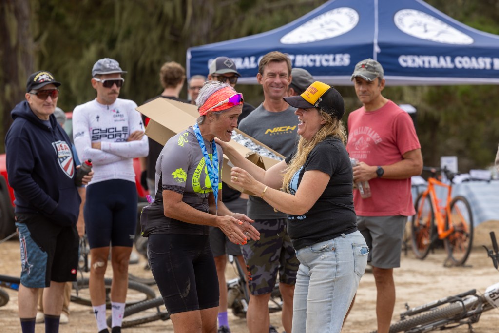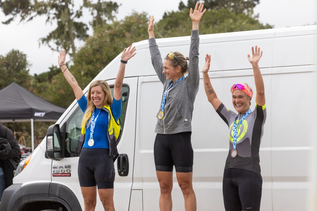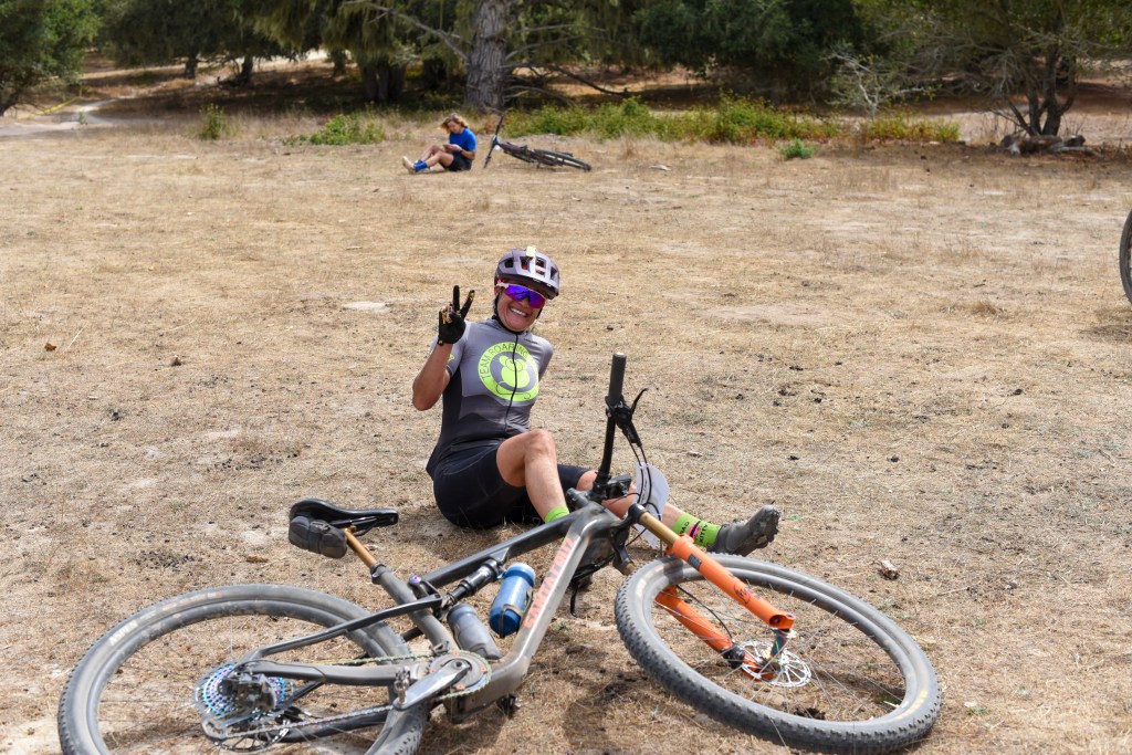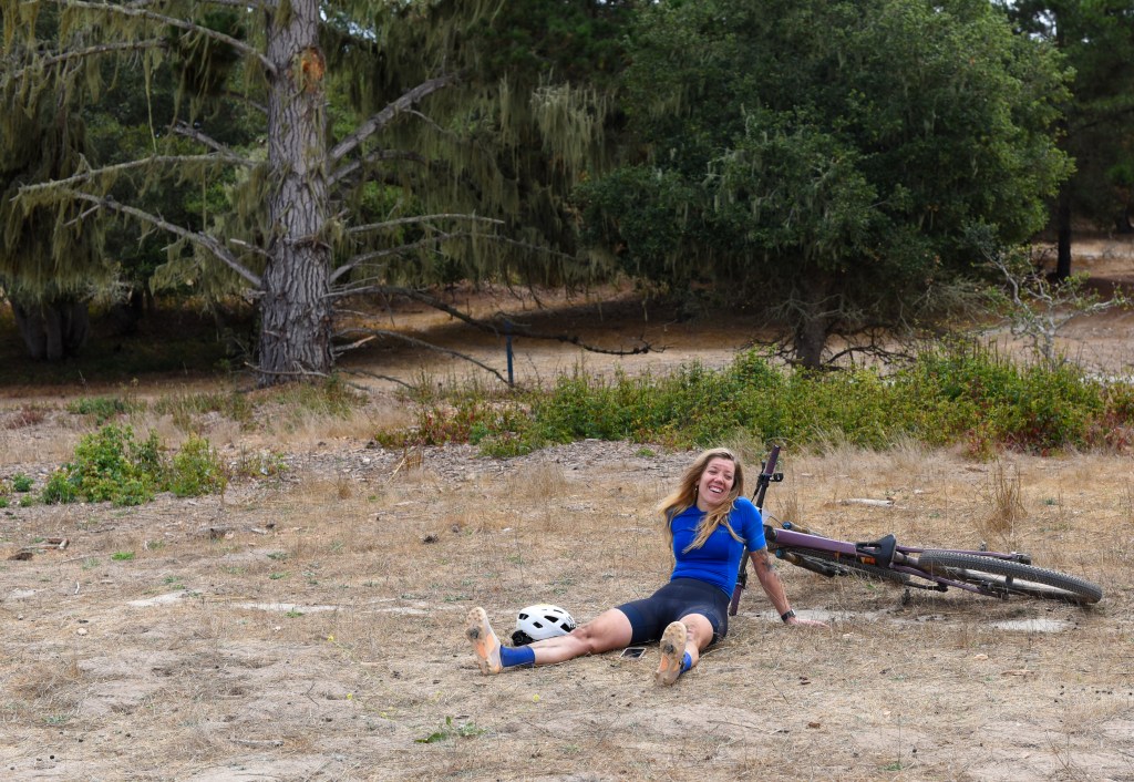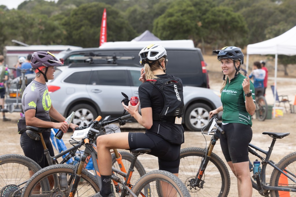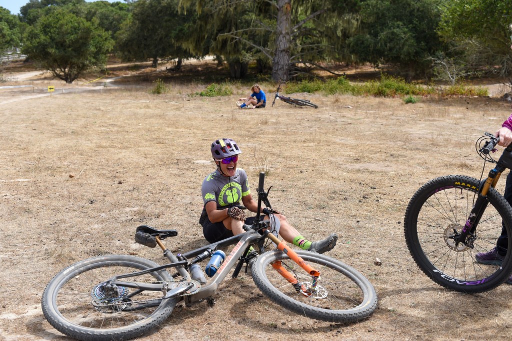 I felt prepared training-wise and excited (not nervous) the day of the race. I’d been doing structured training on the bike for two years, coached by my amazing mtb professor Hannah Otto, and this was my first full year of consistent training (with a few hiccups). I’ve learned so much from training with a coach that I can’t list it all, and it has undoubtedly made me stronger physically and mentally. The hard workouts, shorter races in the CCCX race series, and weight lifting gave me confidence as we rolled into Fort Ord. My bike (2022 Blur TR) had some fancy upgrades for the occasion: a blingy new set of carbon wheels (thank you husband and Excitement Wheelworks) and a fancy new Fox fork with a lock-out lever that at first I thought would be too many buttons to manage while racing, but with some practice I learned to love it. I even treated myself to a better bike computer (my old one couldn’t route its way out of a paper bag) and bought myself a Wahoo Roam v3. I did have some shifting issues with the new cassette, but there’s always something imperfect to manage. I made it work and tried to focus on what I could control.